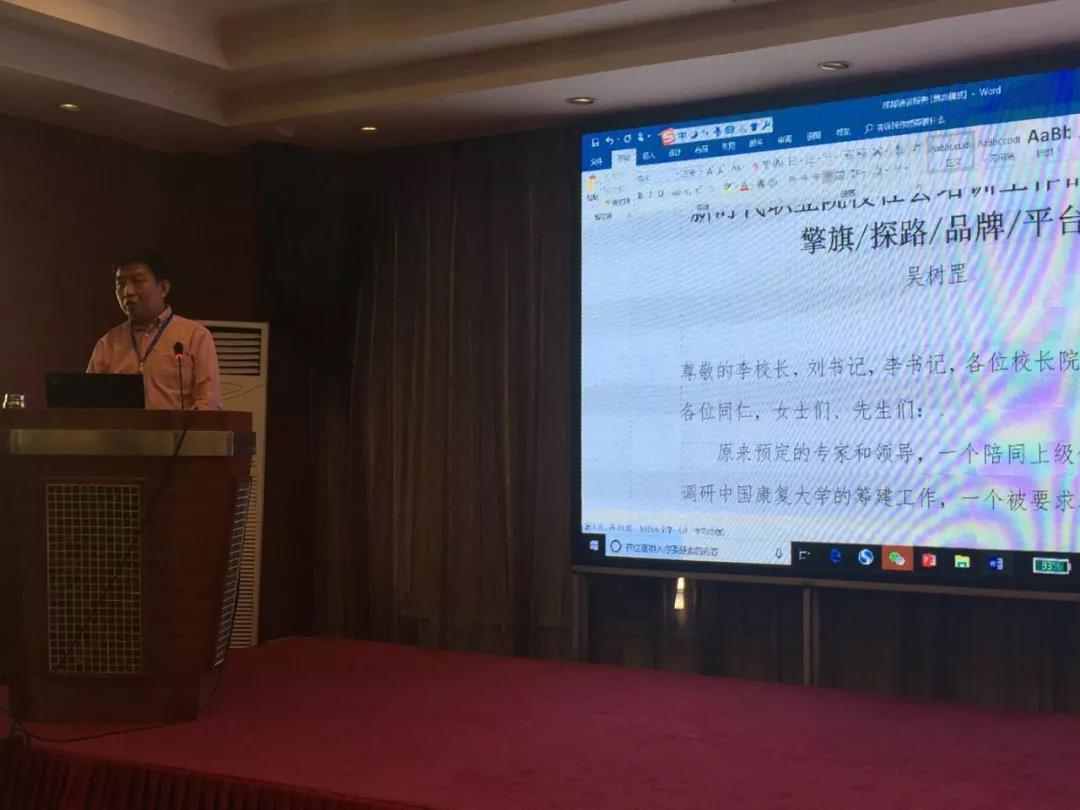 吴树罡秘书长发表了会议致辞,并作了《新时代职业院校社会培训服务能力与擎旗/探路/品牌/平台》的专题报告。