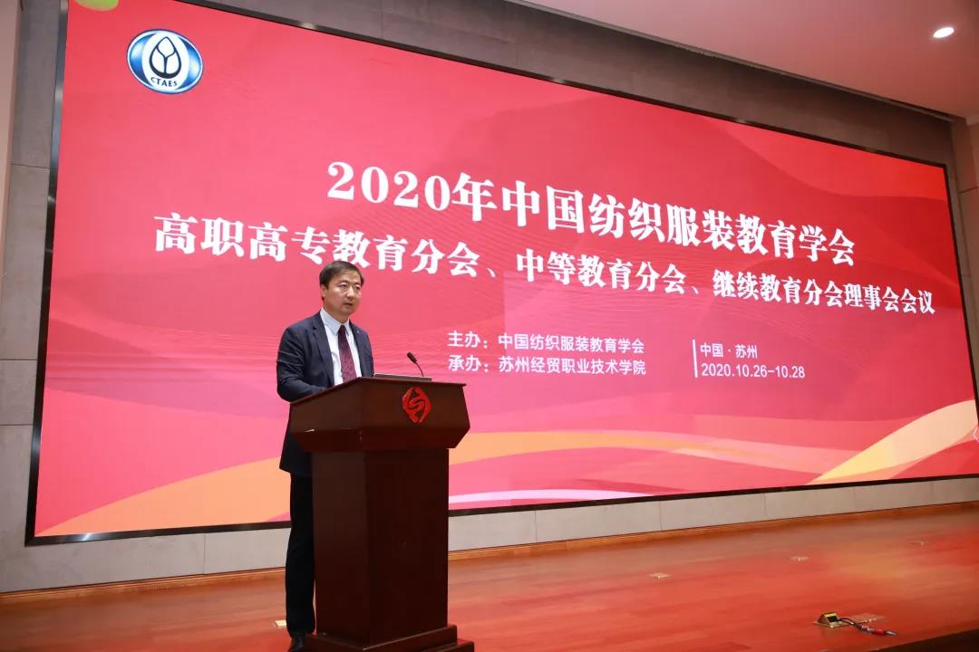 2020年10月27日,中国纺织服装教育学会高职高专教育分会、中等教育分会、继续教育分会理事会会议在苏州经贸职业技术学院召开,来自相关纺织服装职业院校和行业企事业单位的会员代表约210人参加会议,会议由中国纺织服装教育学会副会长兼秘书长纪晓峰主持。中国纺织服装教育学会常务副会长倪阳生出席会议并作工作报告。