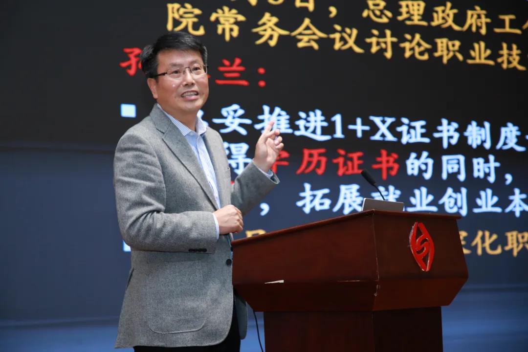 会上,北京锦达科教开发总公司职业技能培训评价顾问陈建伟教授作了《推进“1+X”证书制度,深化纺织服装职业教育教学改革》的报告,介绍了1+X证书制度试点的启动及进展情况、1+X证书制度的内涵和1+X证书制度在纺织服装领域的展开。